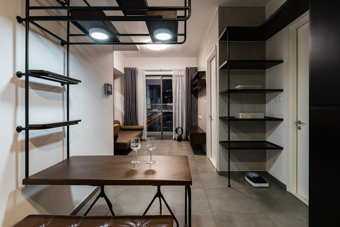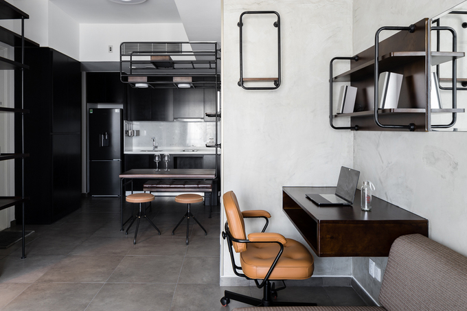 Căn hộ Sài Gòn sử dụng đồ nội thất chủ yếu làm từ các thanh sắt, nhằm giúp giảm diện tích và không tốn công bảo dưỡng.